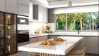 La cocina, moderna y funcional, cuenta con isla central, grifería FV, lavadero independiente y acceso de servicio.